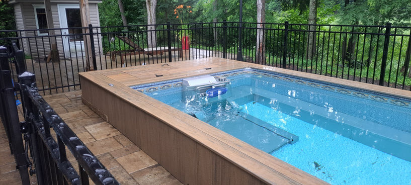 Contour de piscine en composite Tigerwood avec espace de rangement pour moteur