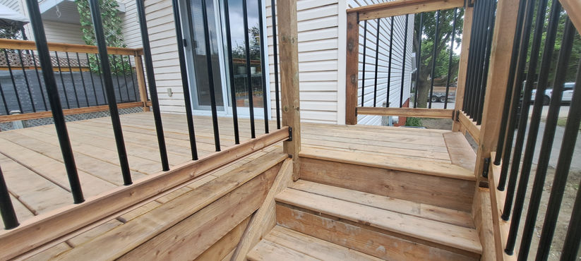 Terrasse en bois traité : Terrasse, escalier, rampes de sécuritées, murs d'intimités