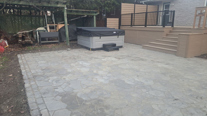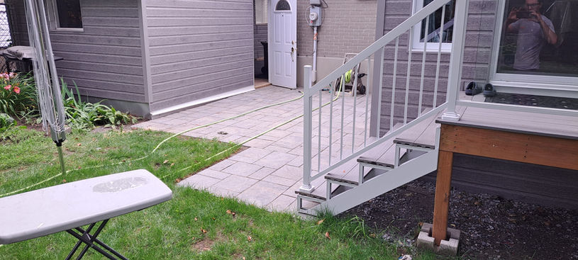 Terrasse en PVC & Dalles : Pvc Azeck, rampes alluminium, dalles rosebel et vendome, trottoir pierres naturelles