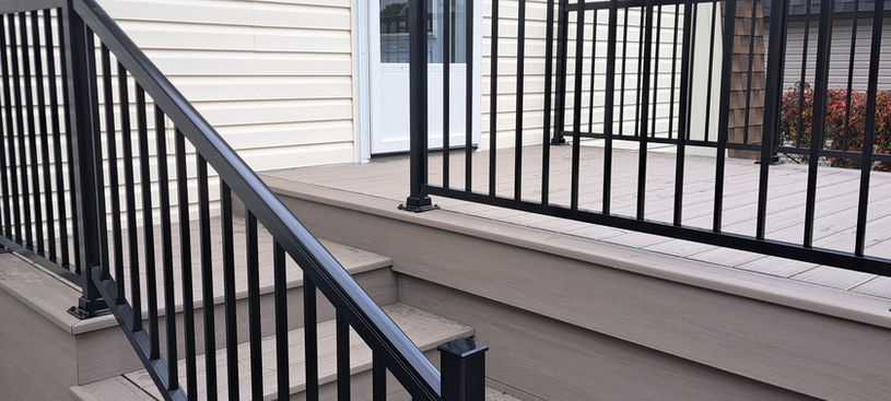 Terrasse en PVC Azeck, rampes de sécuritées en alluminiums, accès espace de rangement